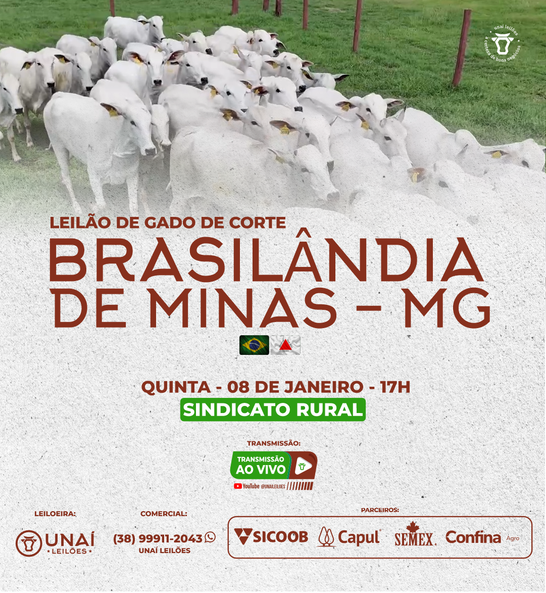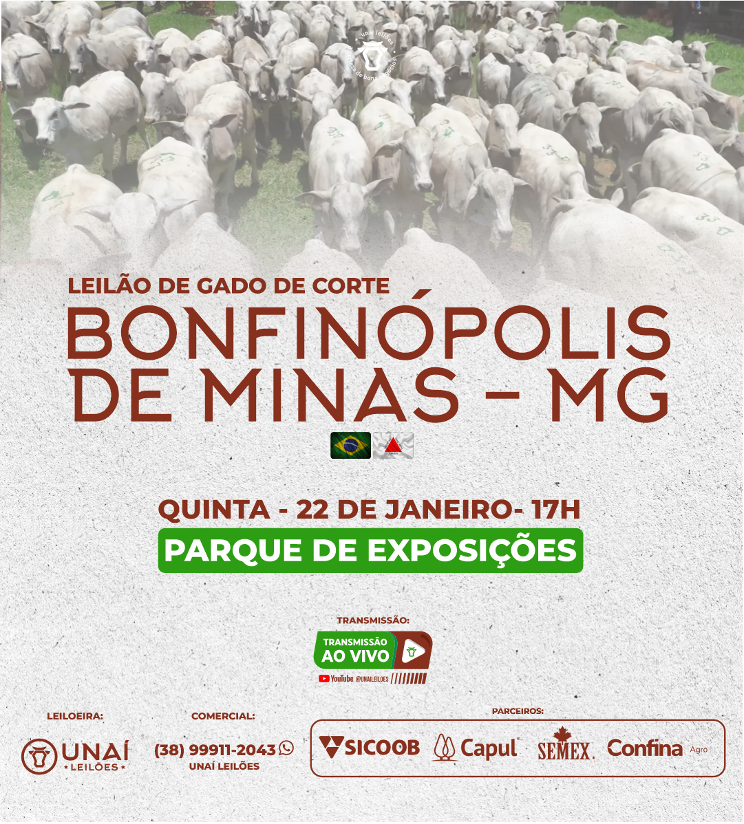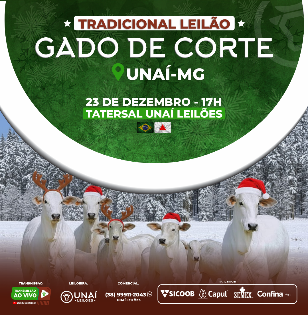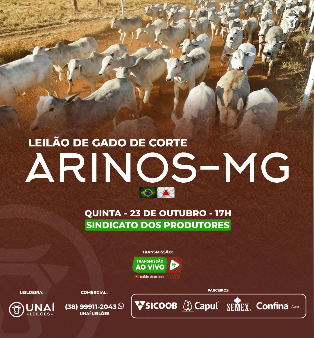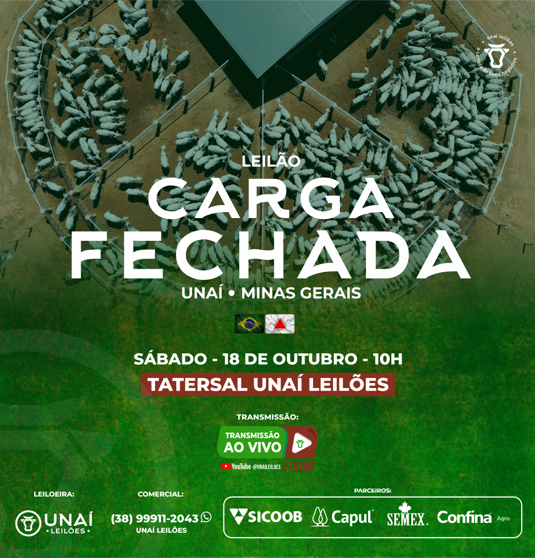 Início: 03/03/2026 às 17:00:00 Fim: 03/03/2026 às 23:00:00 LEILÃO DE GADO DE CORTE DE UNAÍ-MG Ver Lotes