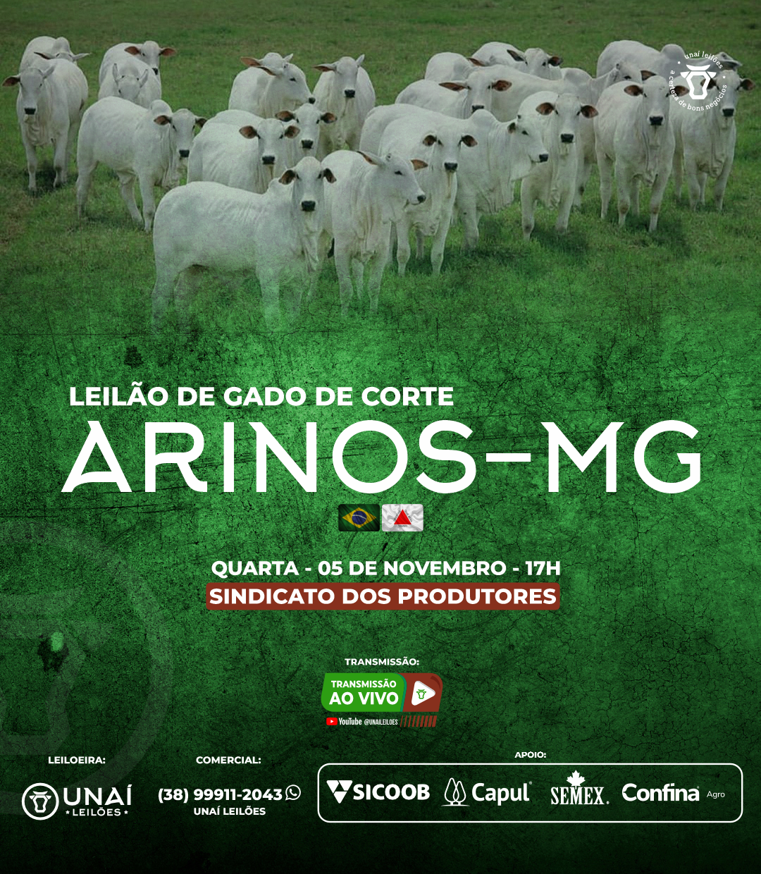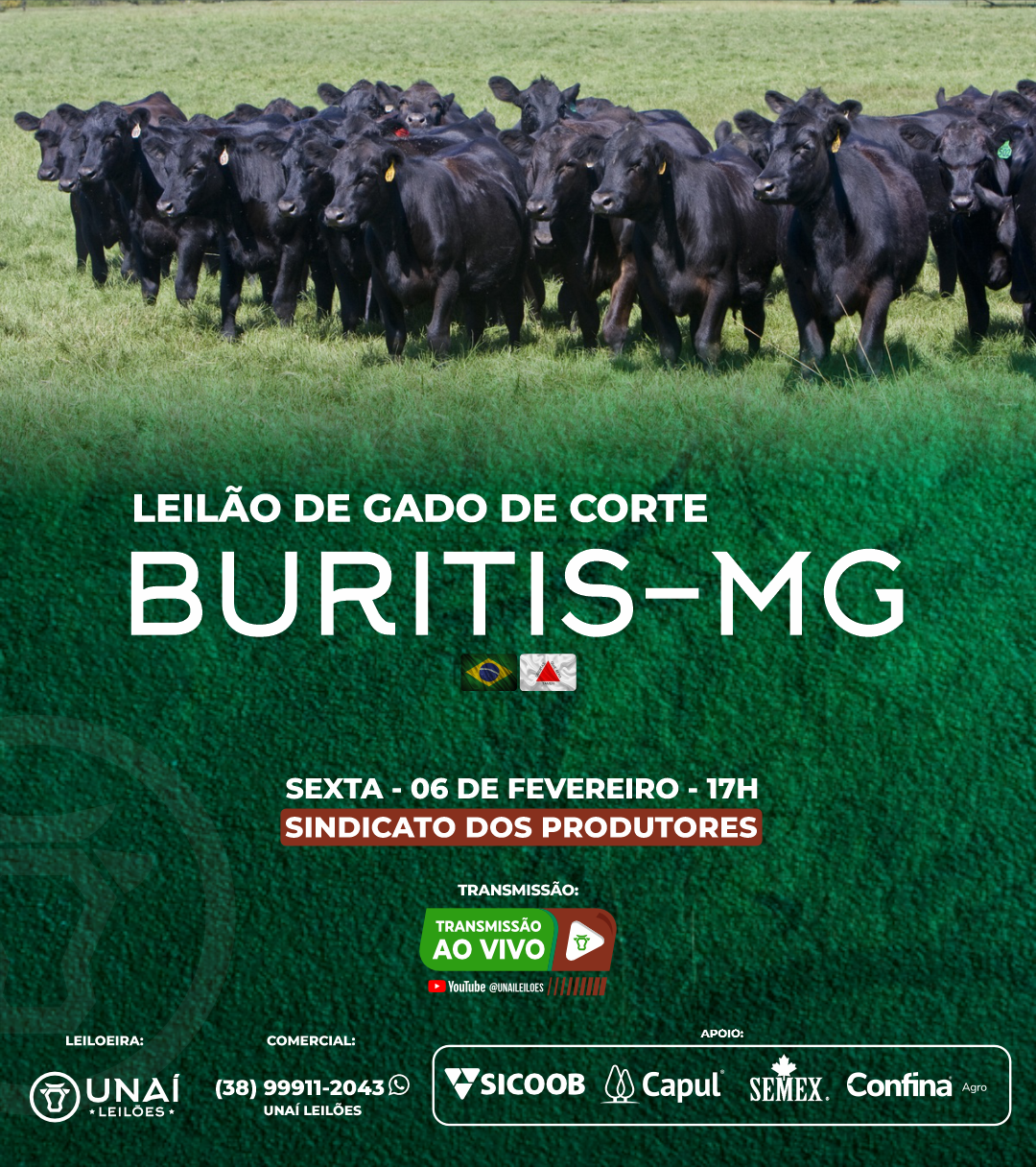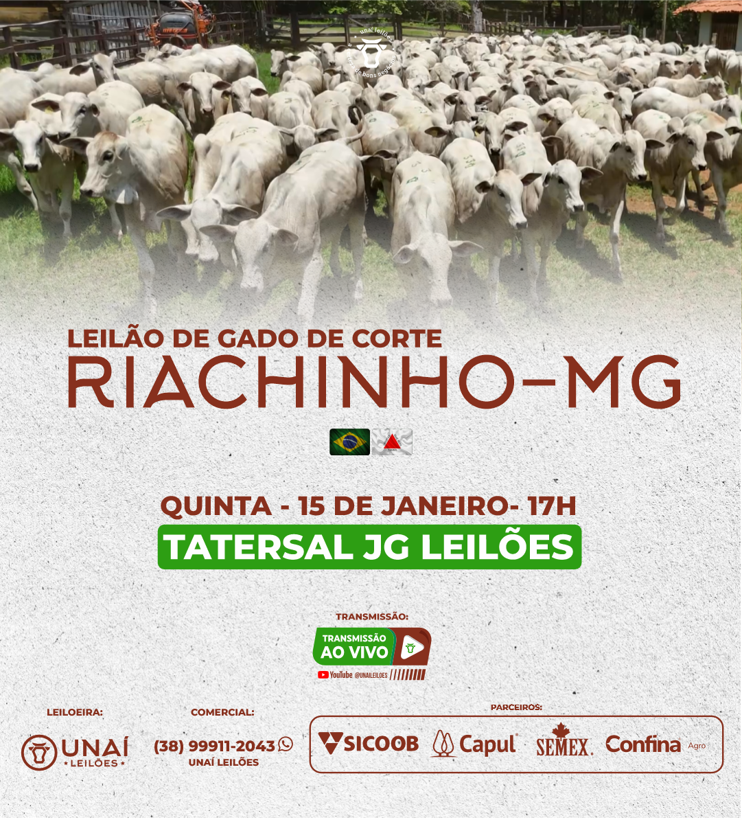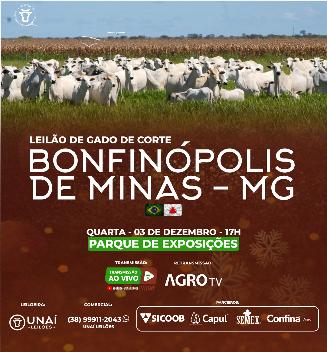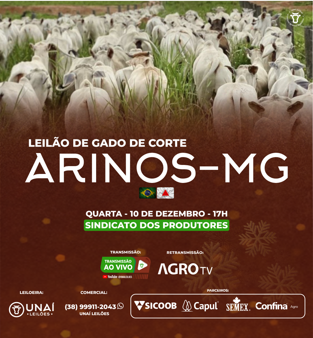 Início: 03/03/2026 às 17:00:00 Fim: 03/03/2026 às 23:00:00 LEILÃO DE GADO DE CORTE DE UNAÍ-MG Ver Lotes