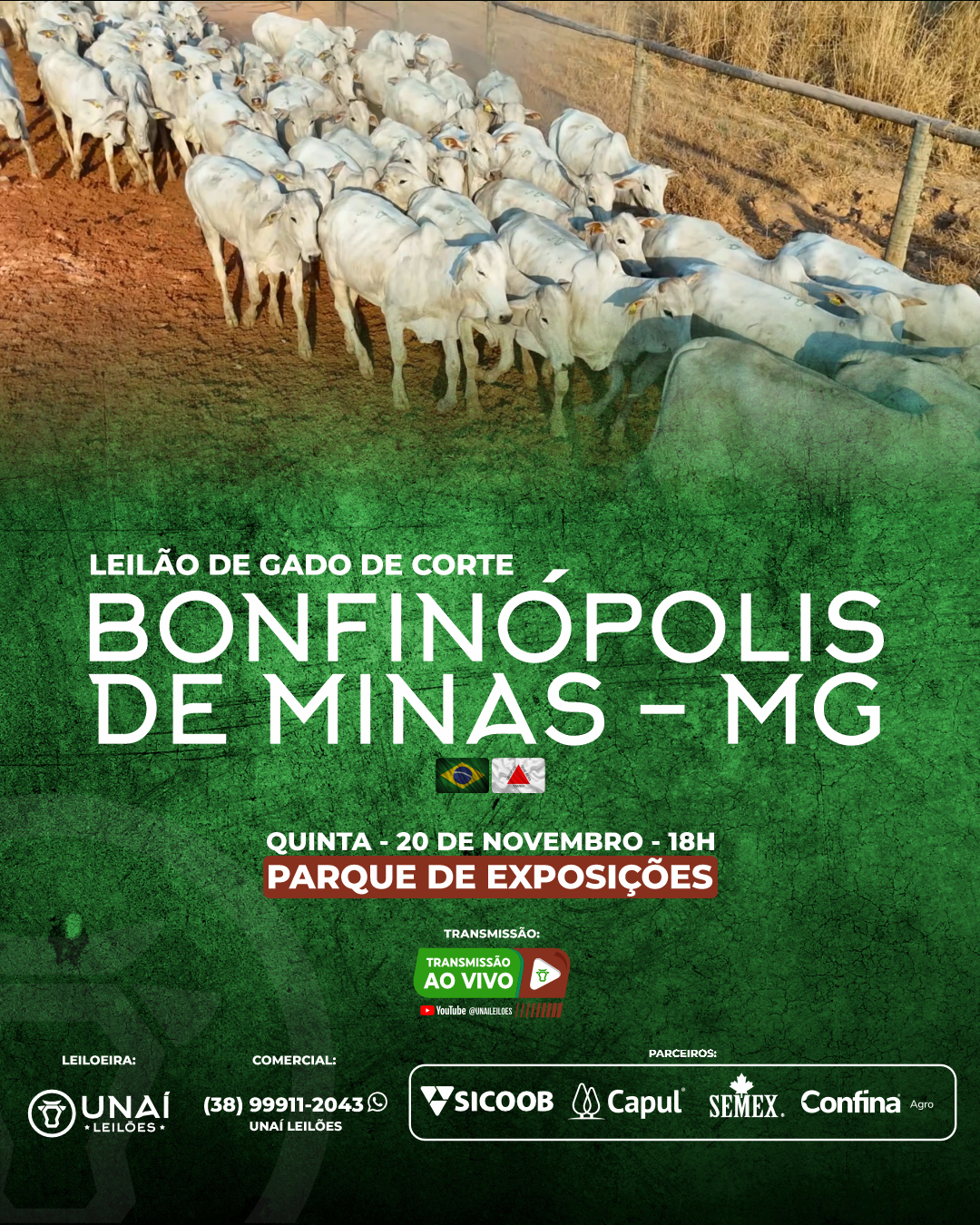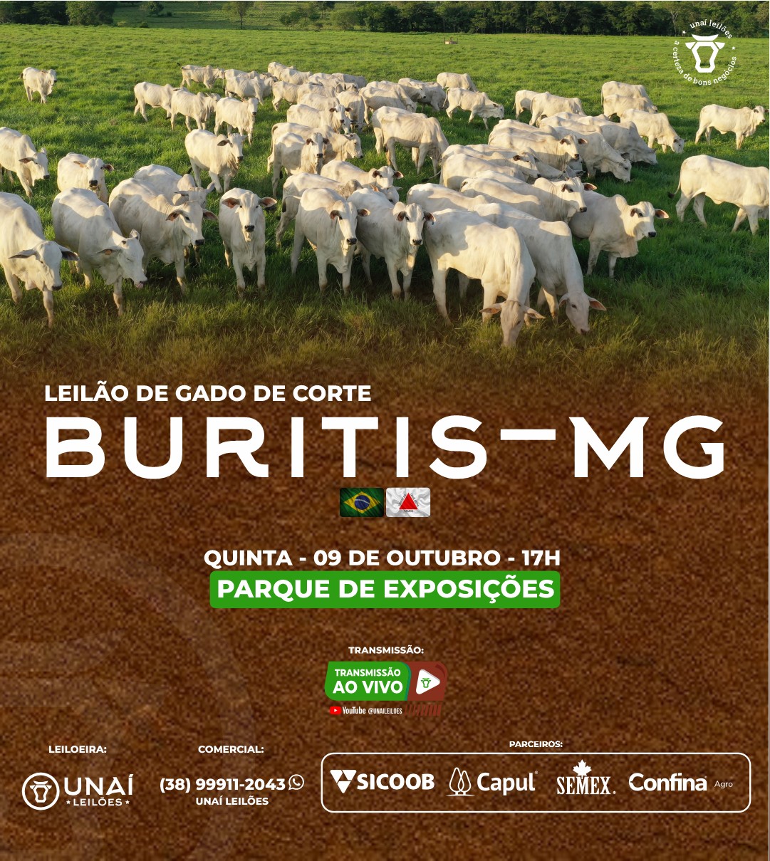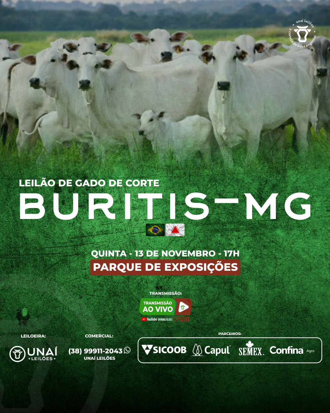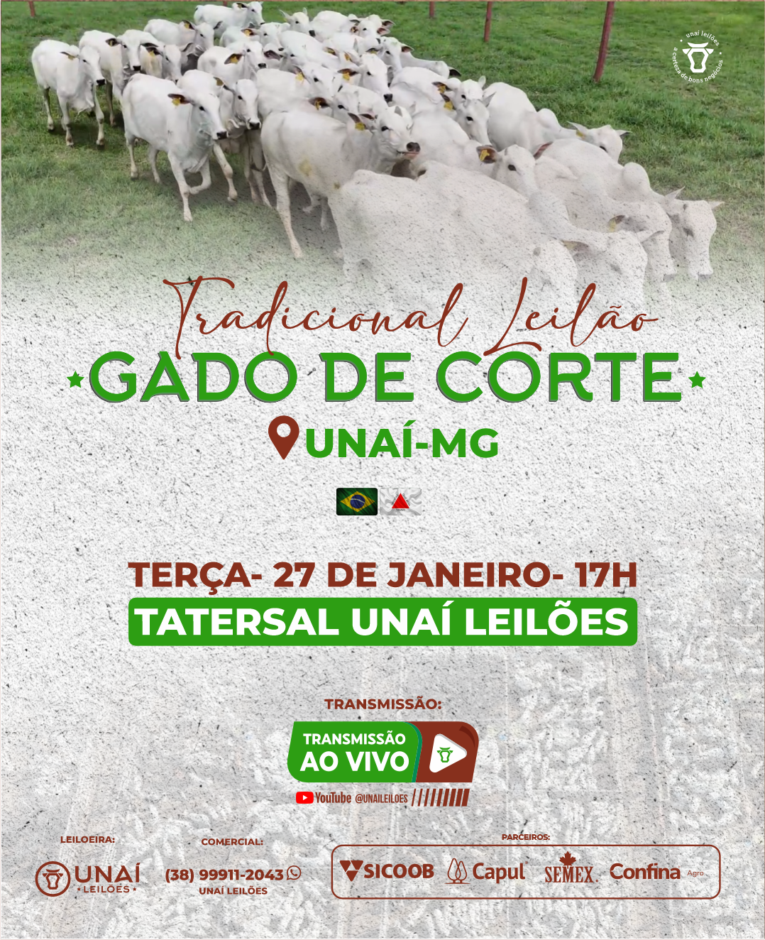 Início: 03/03/2026 às 17:00:00 Fim: 03/03/2026 às 23:00:00 LEILÃO DE GADO DE CORTE DE UNAÍ-MG Ver Lotes