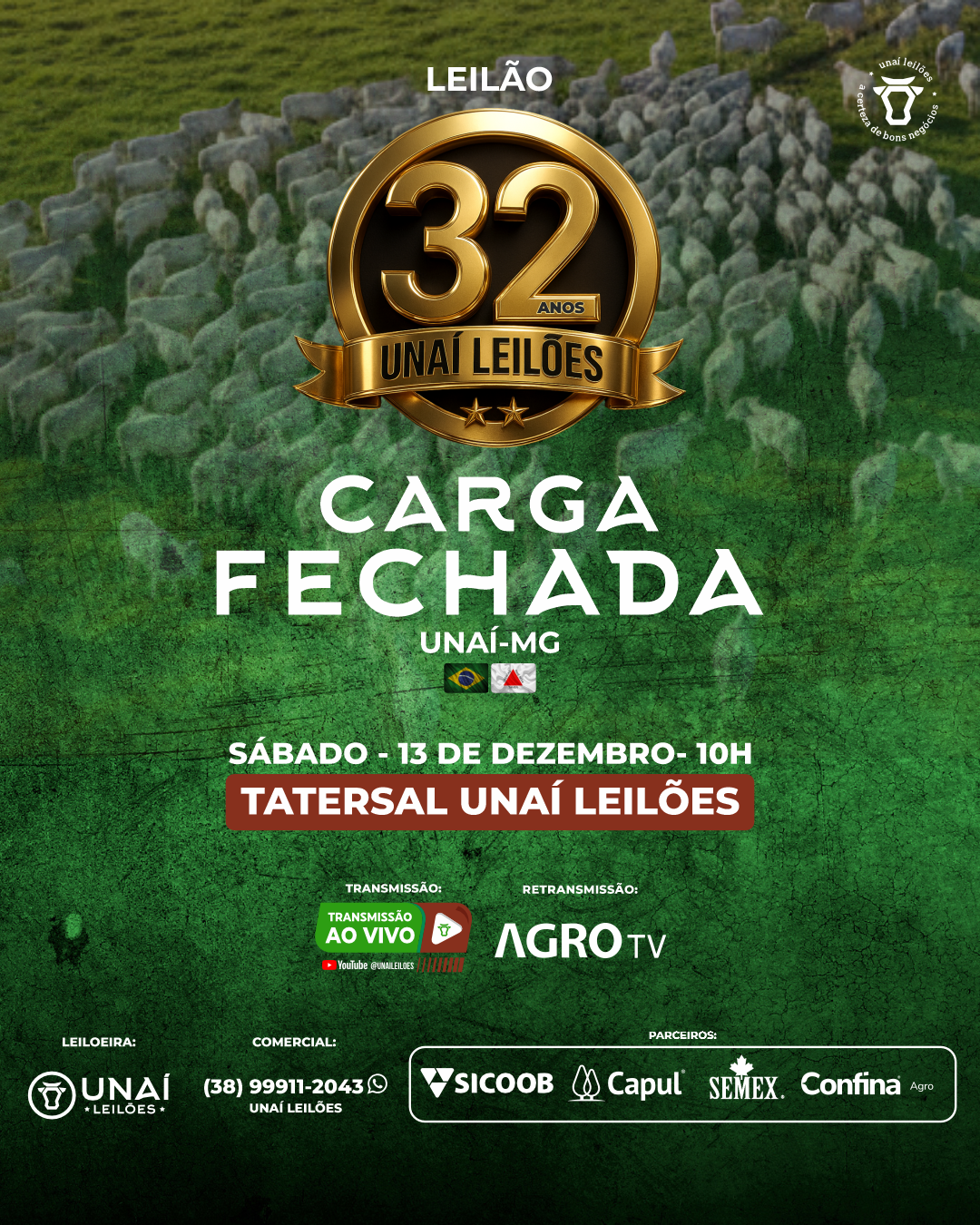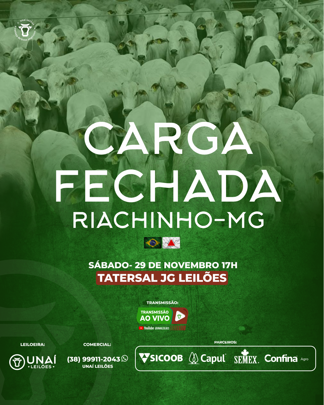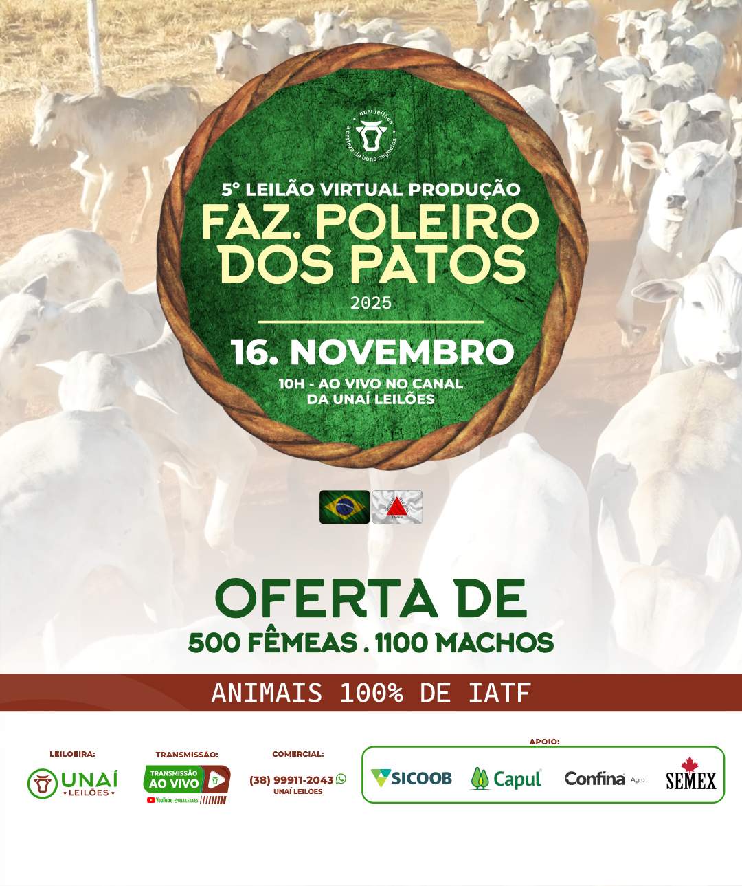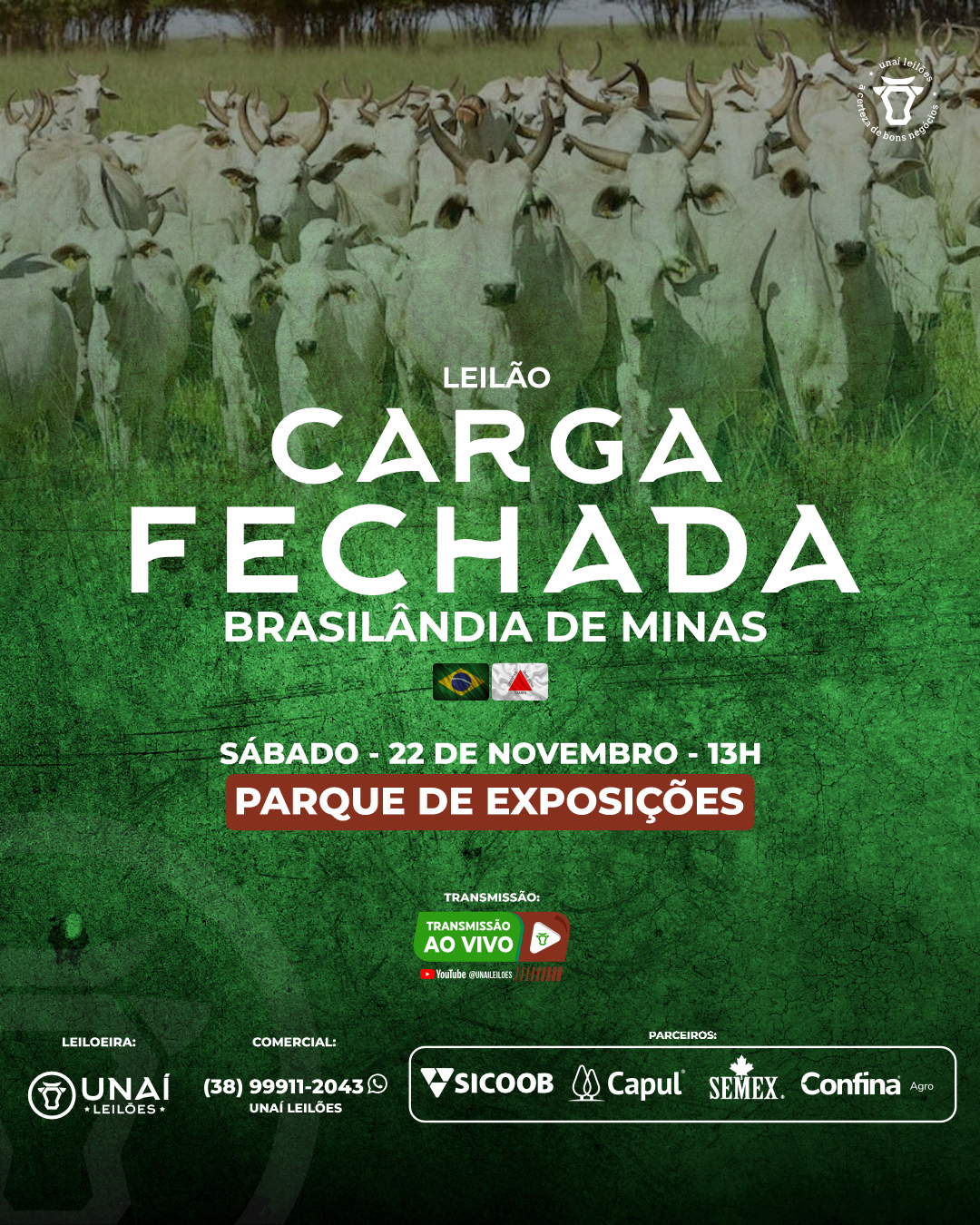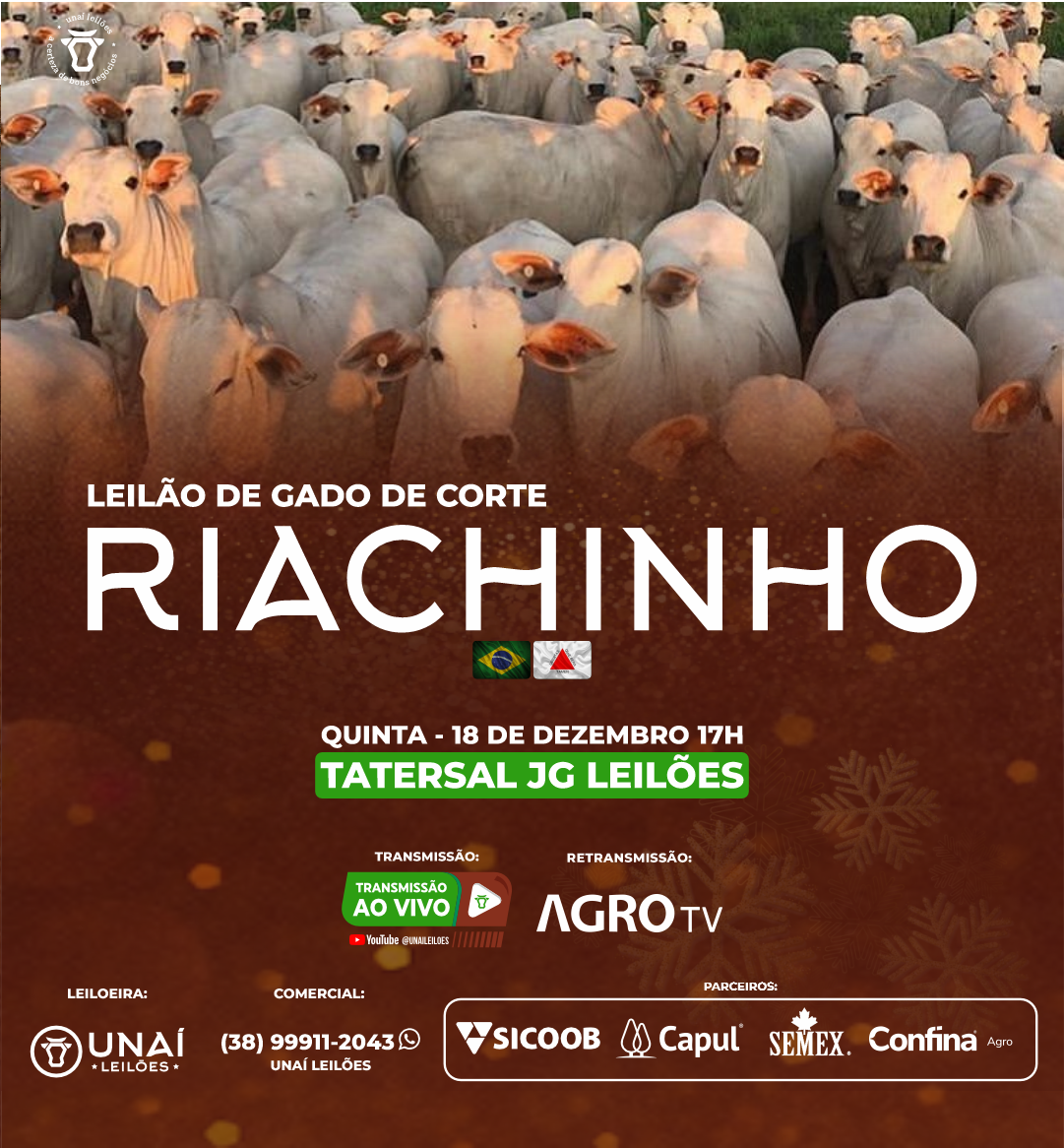 Início: 03/03/2026 às 17:00:00 Fim: 03/03/2026 às 23:00:00 LEILÃO DE GADO DE CORTE DE UNAÍ-MG Ver Lotes