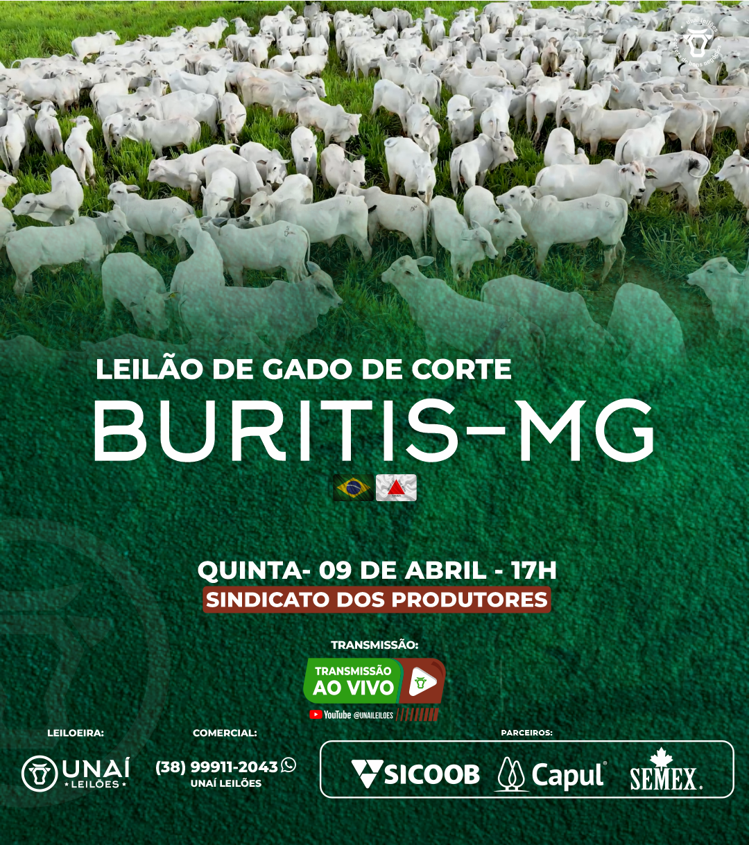 Início: 21/04/2026 às 17:00:00 Fim: 21/04/2026 às 23:00:00 LEILÃO DE GADO DE CORTE DE UNAÍ-MG Ver Lotes
